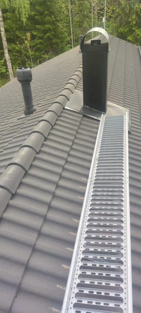 - (Vain tiilikatto): Rikkoutuneiden tiilien vaihdon sisältäen mahdolliset leikkaukset esim. jiireihin. (Asiakkaan omat tiilet, max 30kpl) Mikäli tiiliä ei löydy laskutamme lisäksi tiilien hinnan.